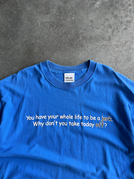 Vintage Blue Quote Spellout Shirt - L