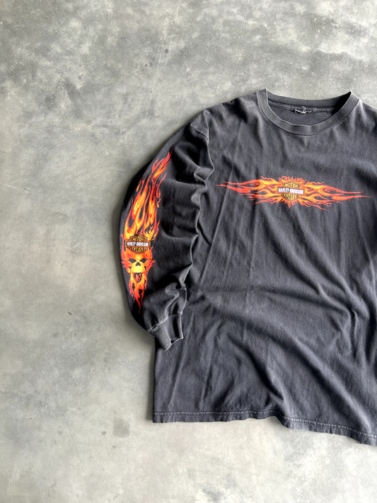 Vintage Black Harley Flame Long Sleeve - L