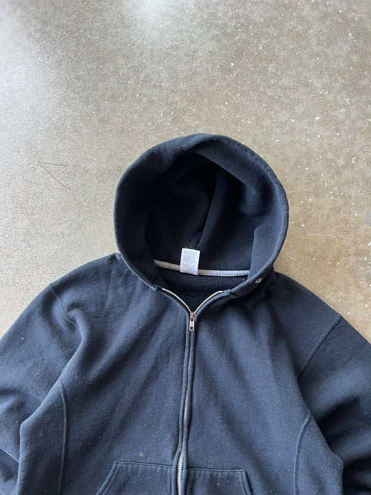 Vintage Navy Blue Russell Zip Up Hoodie - L