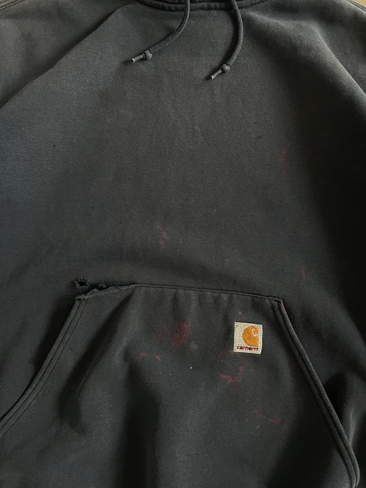 Vintage Black Faded Distressed Carhartt Hoodie - M