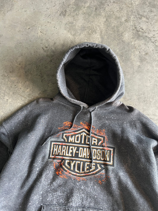 Vintage Grey Paint Stained Harley Hoodie - XL