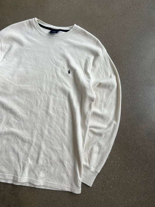 Vintage Cream White Polo Thermal Shirt - XL