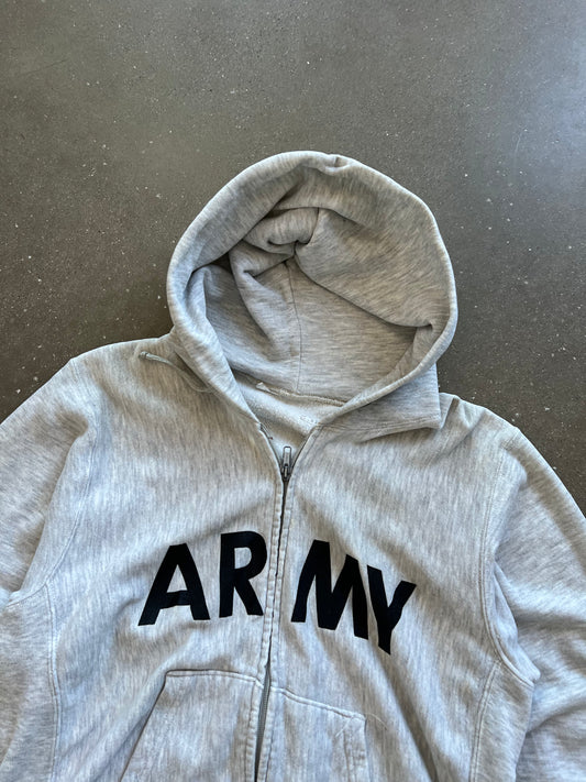Vintage White Army Zip Up Hoodie - M