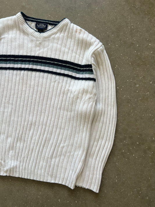 Vintage Sky Blue Stripped Knit Sweater - XL