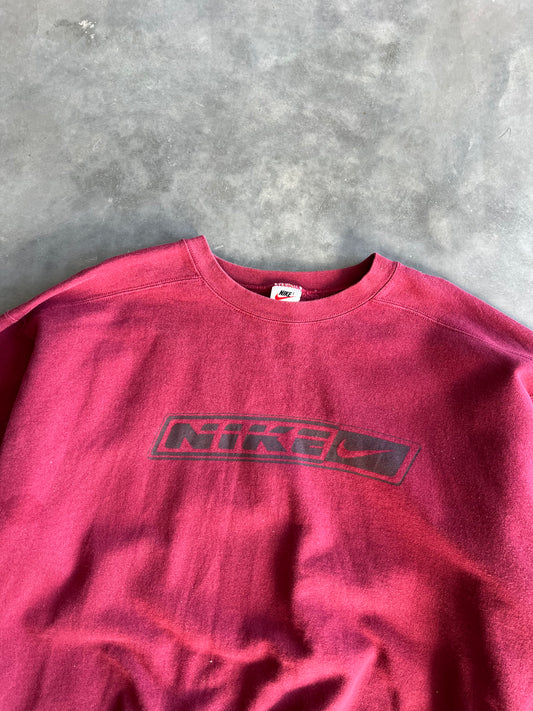 Vintage Red Nike Swoosh Spellout Crew - XL