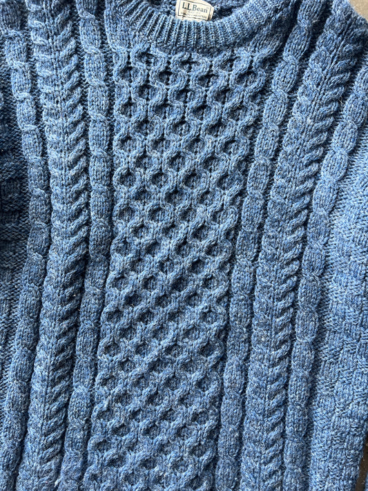 Vintage Blue Cable Knit LL Bean Sweater - M
