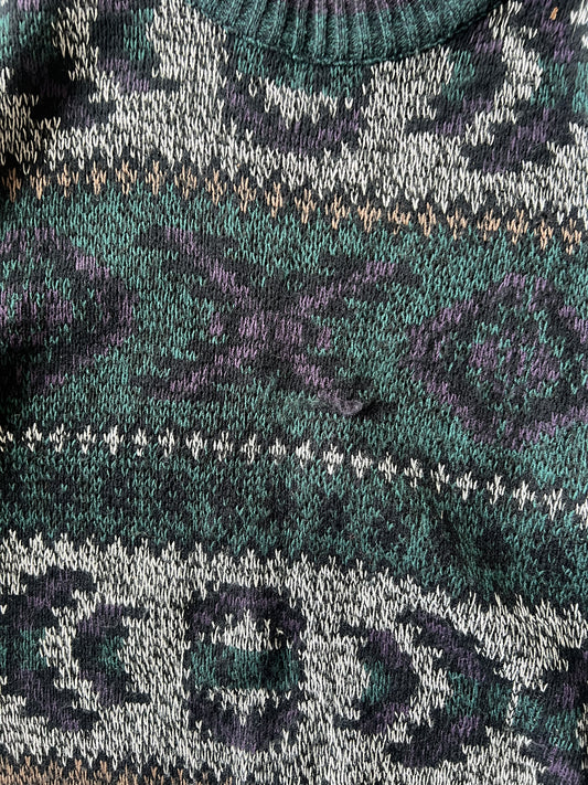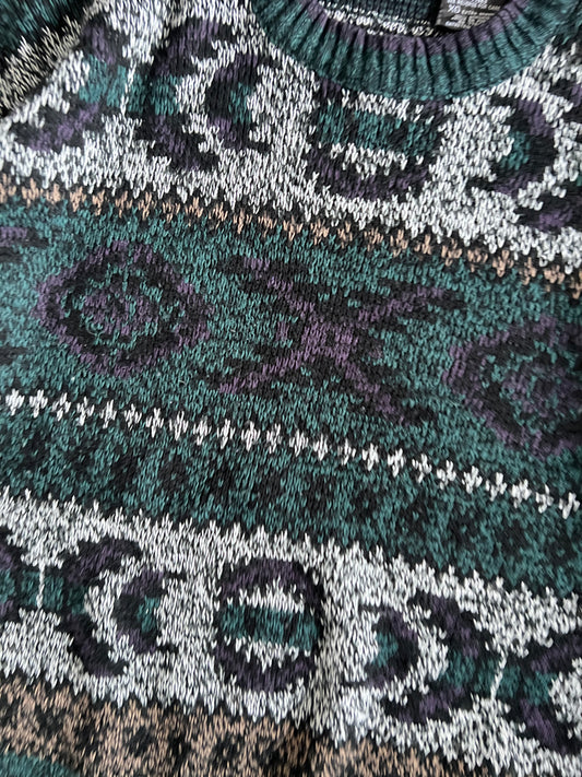 Vintage Green Multi Color Expressions Knit Sweater - XL