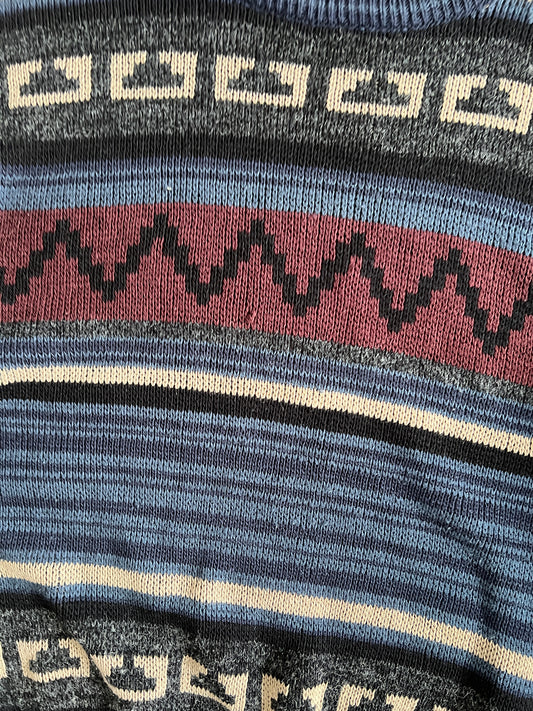 Vintage Blue Multi Color Knit Sweater - M