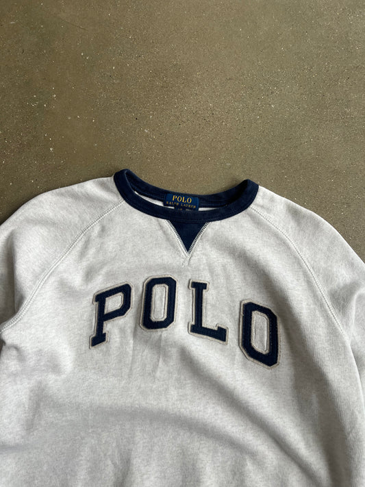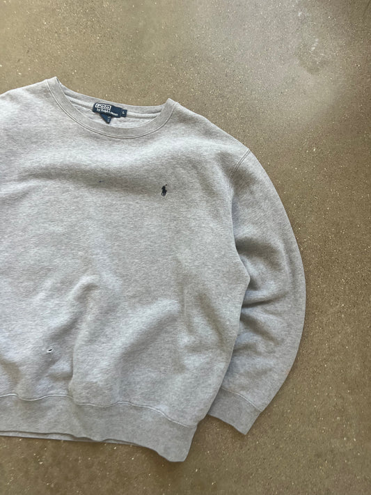 Vintage Heather Grey Polo Logo Crew - L