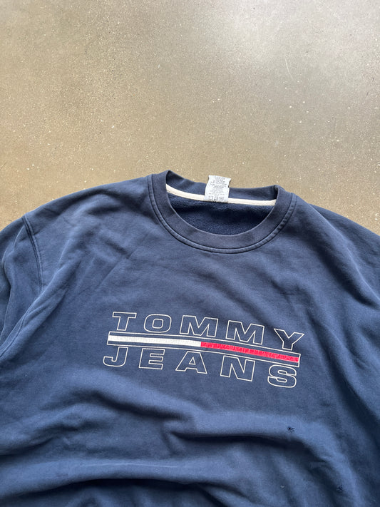 Vintage Navy Blue Tommy Hilfiger Logo Crew - XL