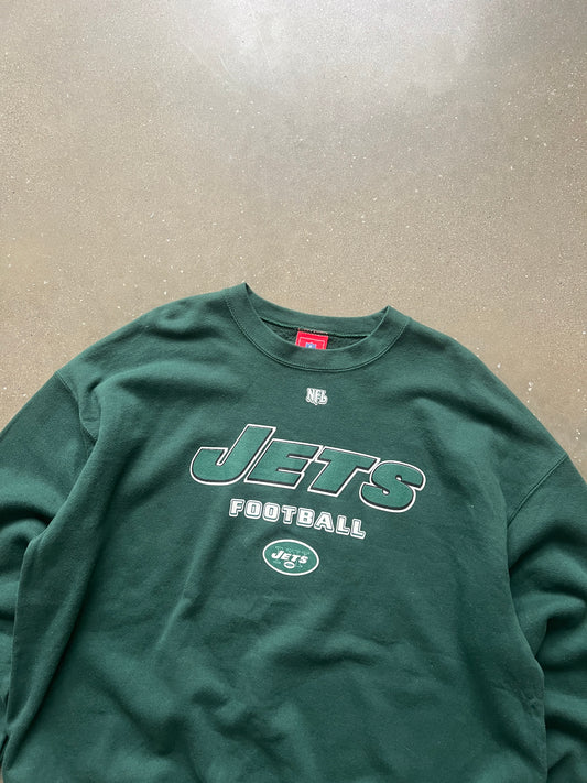 Vintage Green Jets Spellout Crew - XL