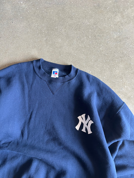 Vintage Navy Blue Yankees Puffer Crew - XL