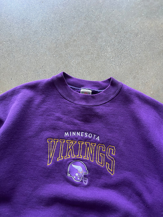 Vintage Purple Minnesota Vikings Spellout Crew Neck Sweater - L