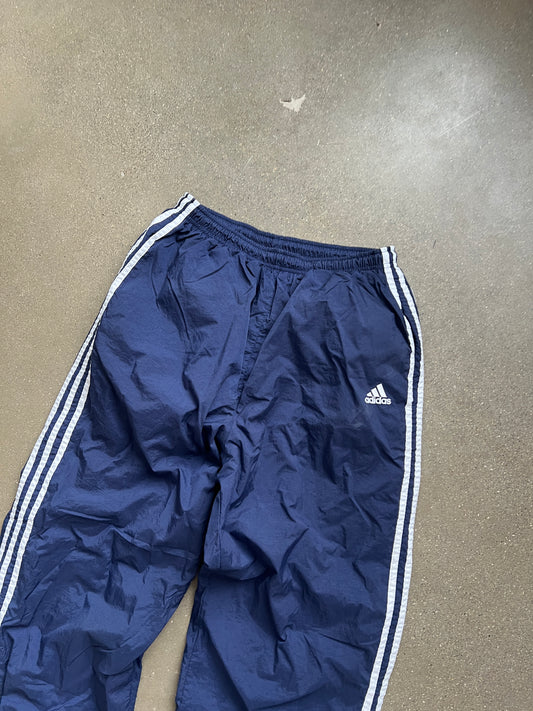 Vintage Navy Blue Adidas Stripped Track Pants - L