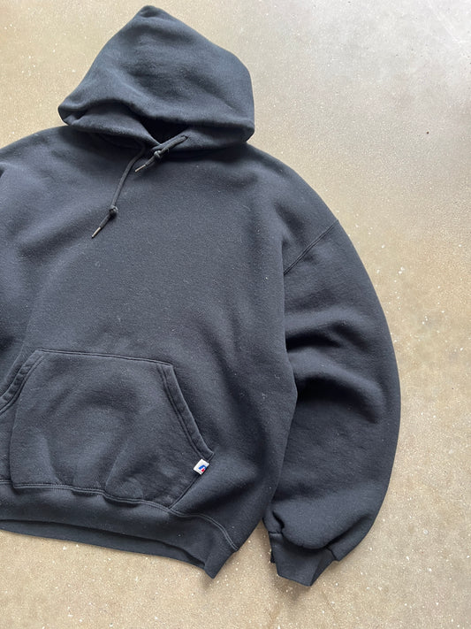 Vintage Black Minimalist Russell Athletic Hoodie - L