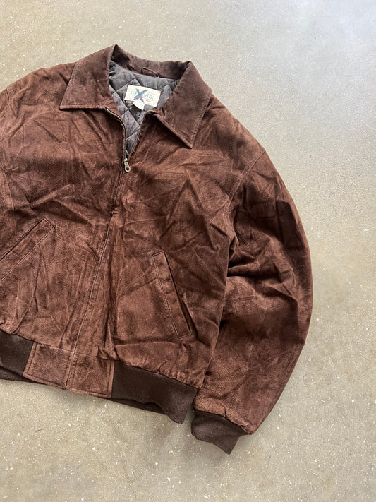 Vintage Suede Brown Bomber Jacket - M