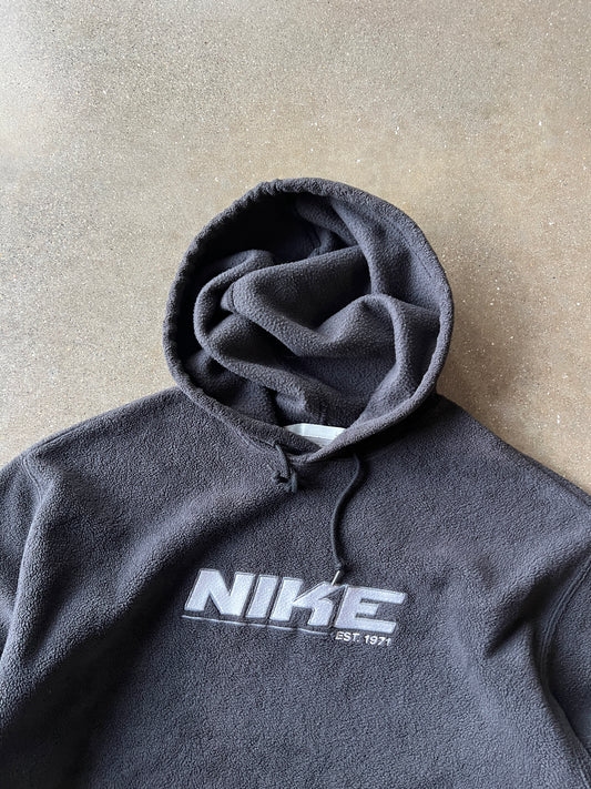 Vintage Black Nike Spellout Fleece Hoodie - M