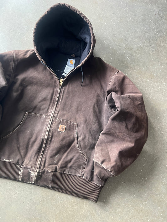 Vintage Faded Brown Carhartt Zip Up Hoodie - M