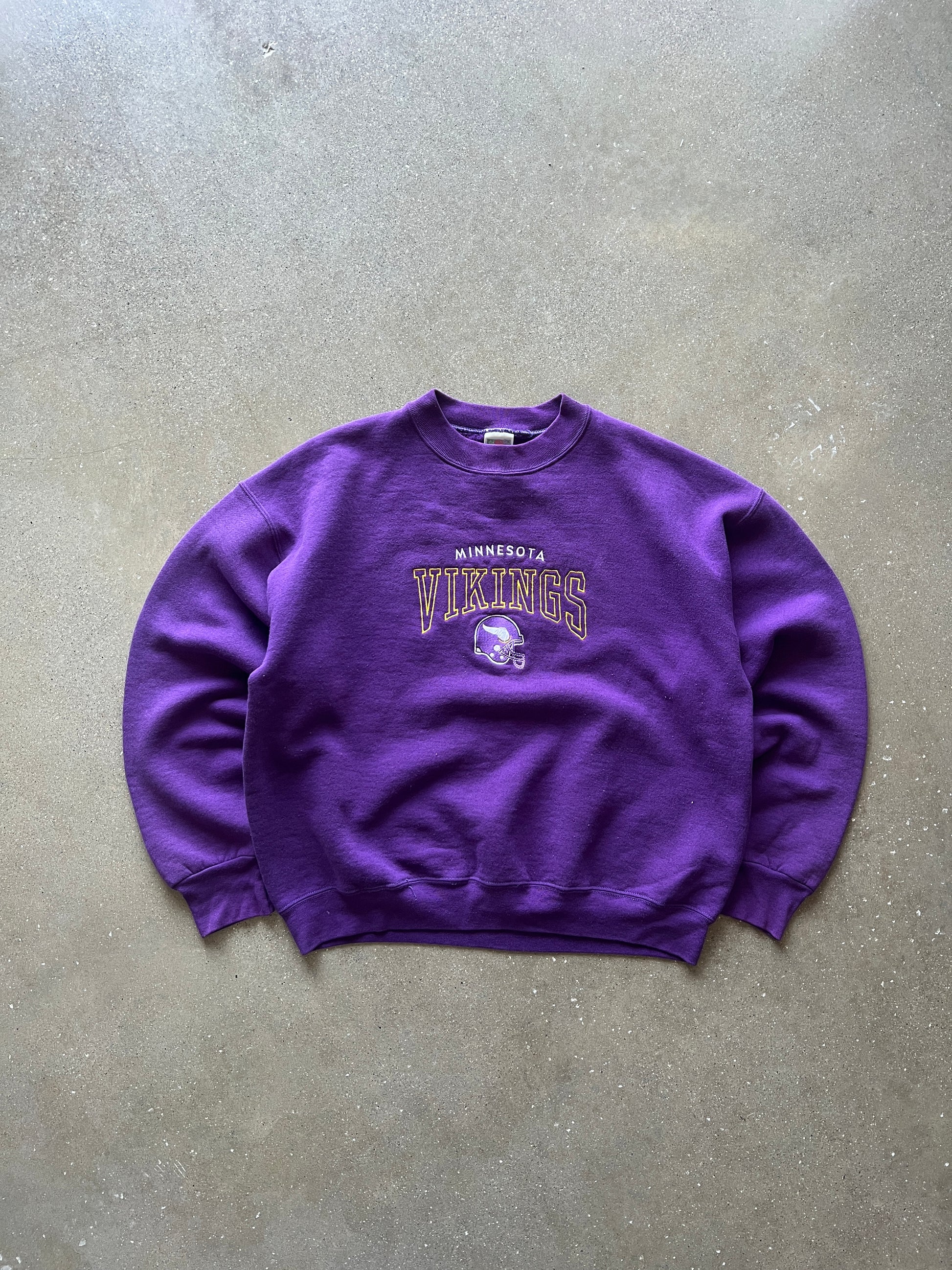 Vintage Purple Minnesota Vikings Spellout Crew Neck Sweater - L