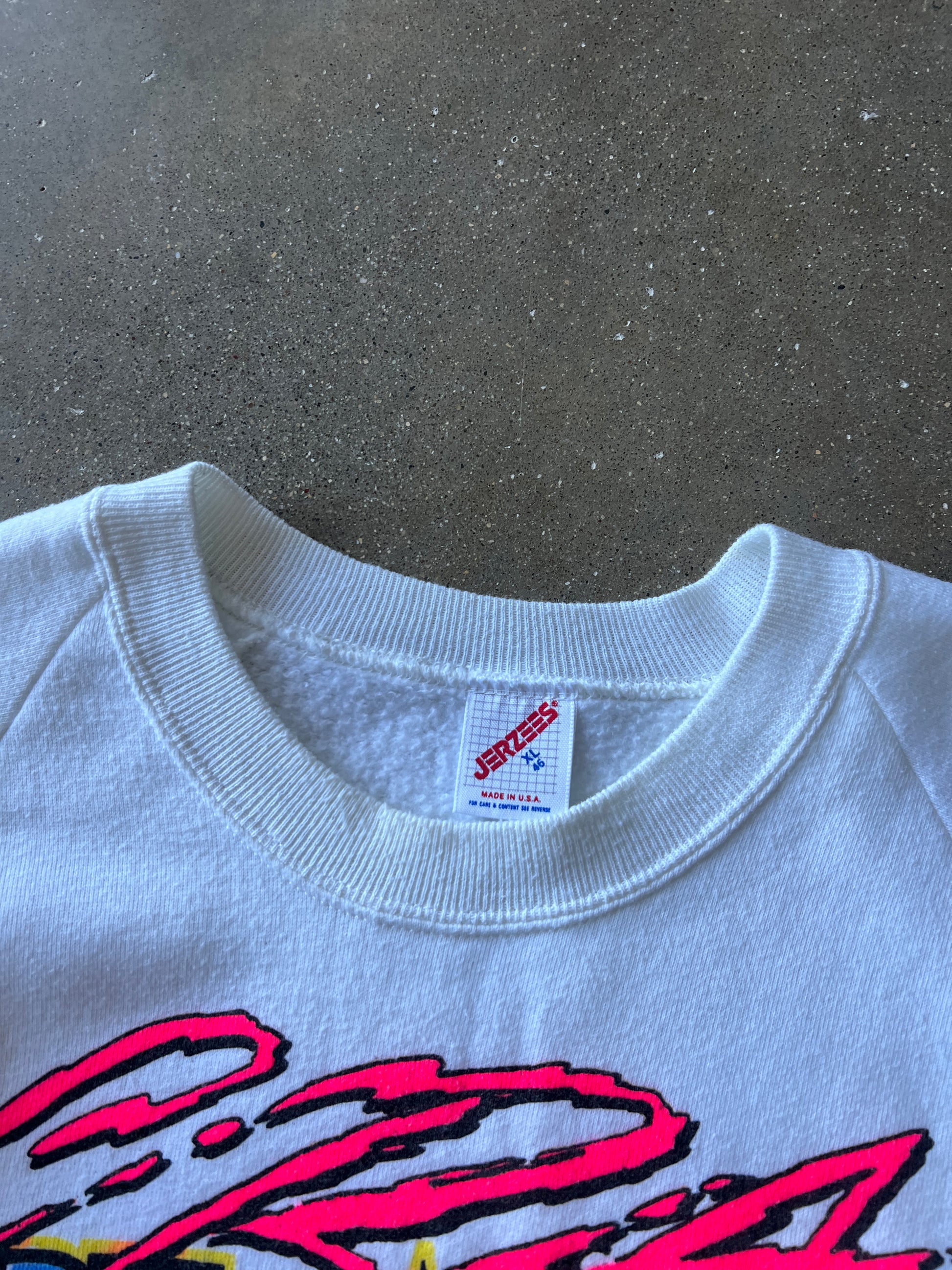 Vintage White and Neon Autographed Race Crew Neck Sweater - XL