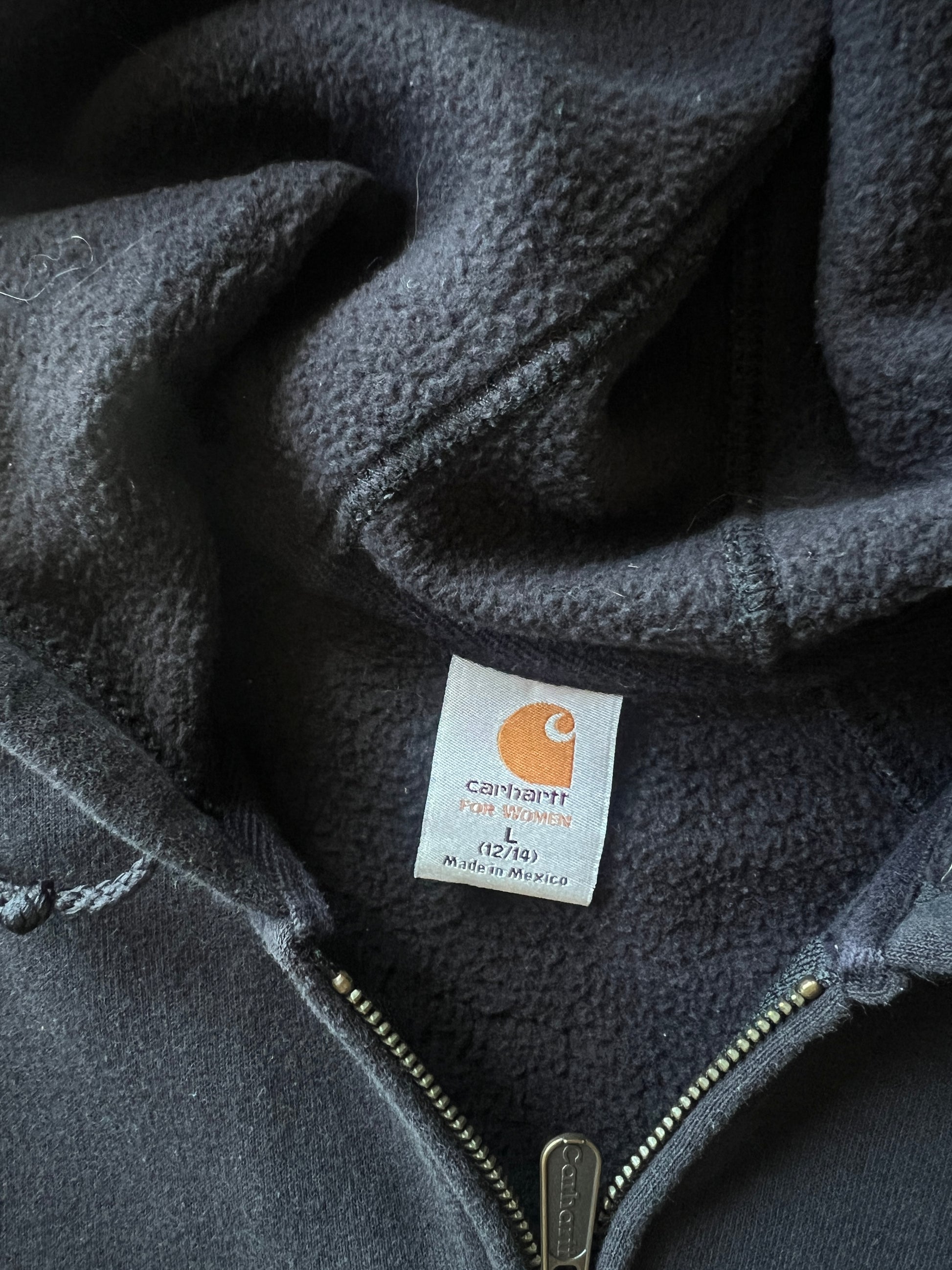 Vintage Black Carhartt Spellout Hoodie - L