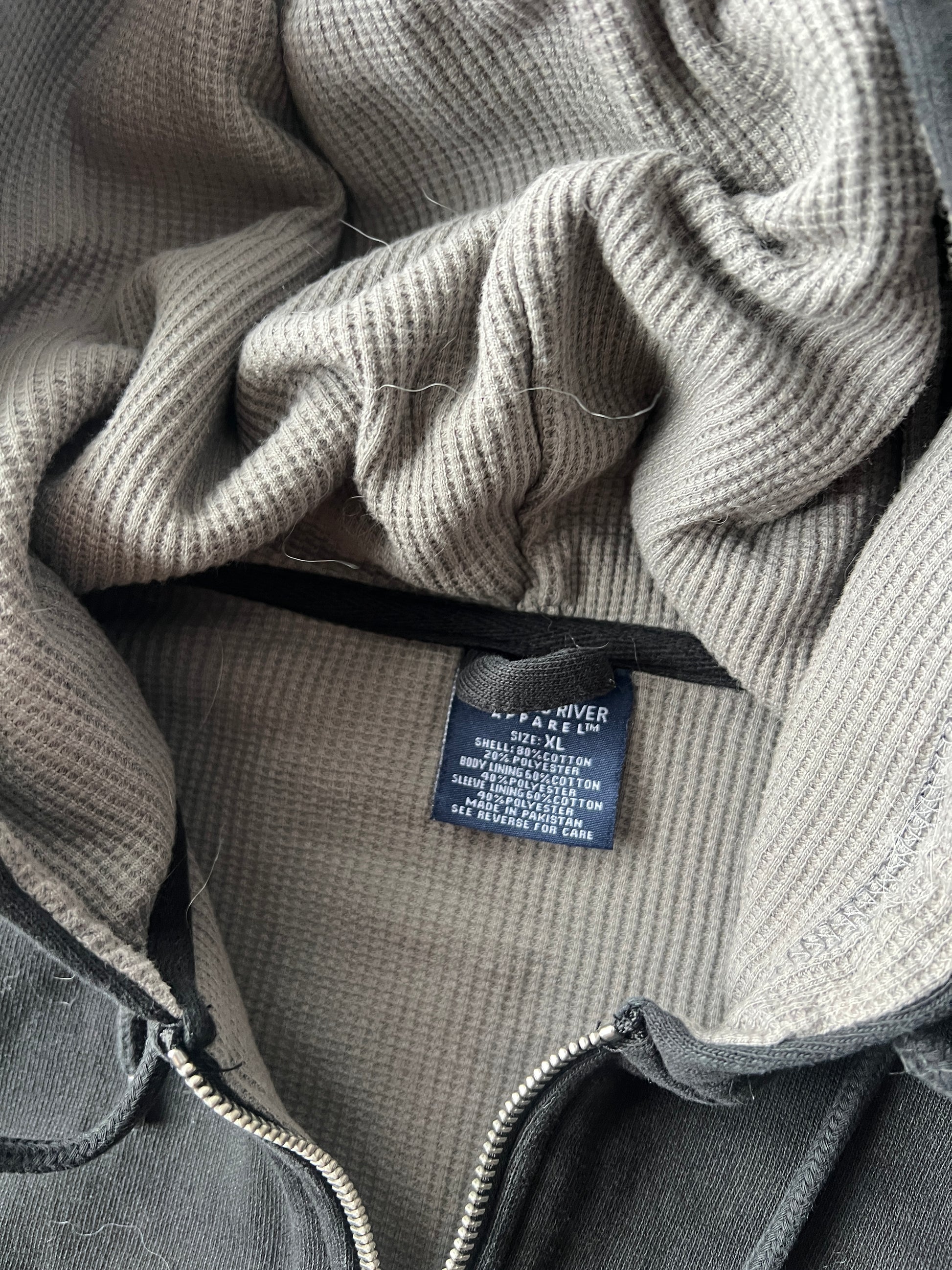 Vintage Black Thermal Lined Zip Up Hoodie - XL