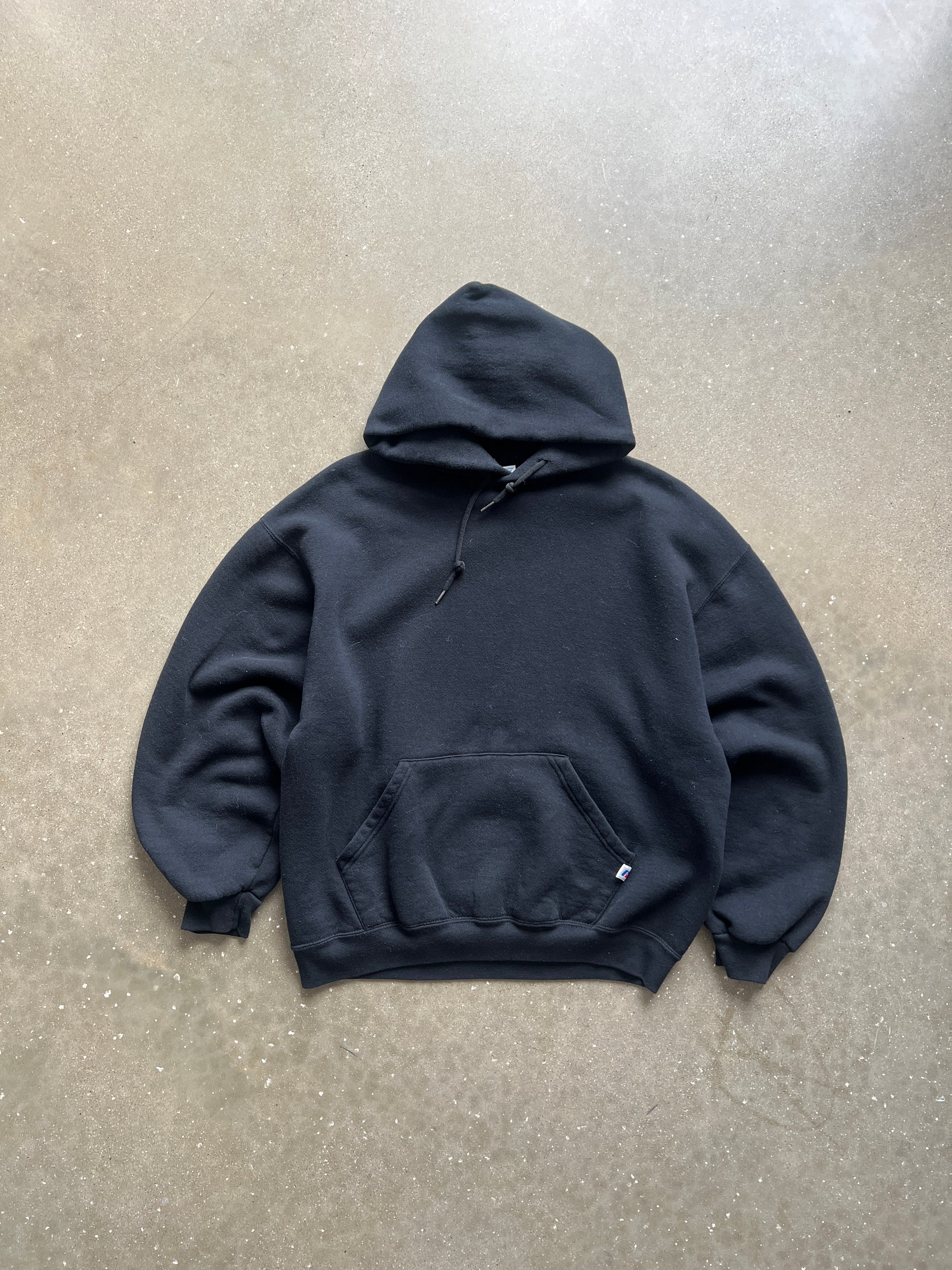 Vintage Black Minimalist Russell Athletic Hoodie - L