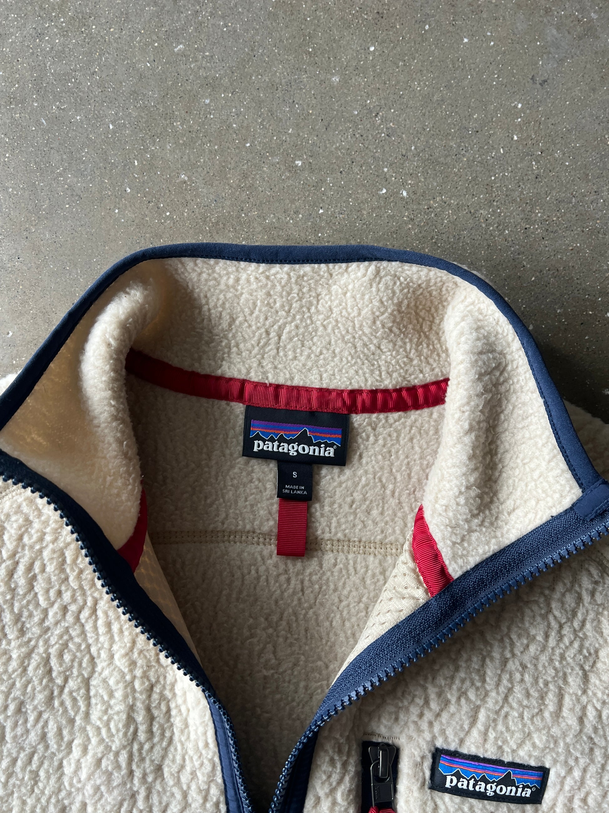 Vintage Cream and Blue Patagonia Fleece Vest - S
