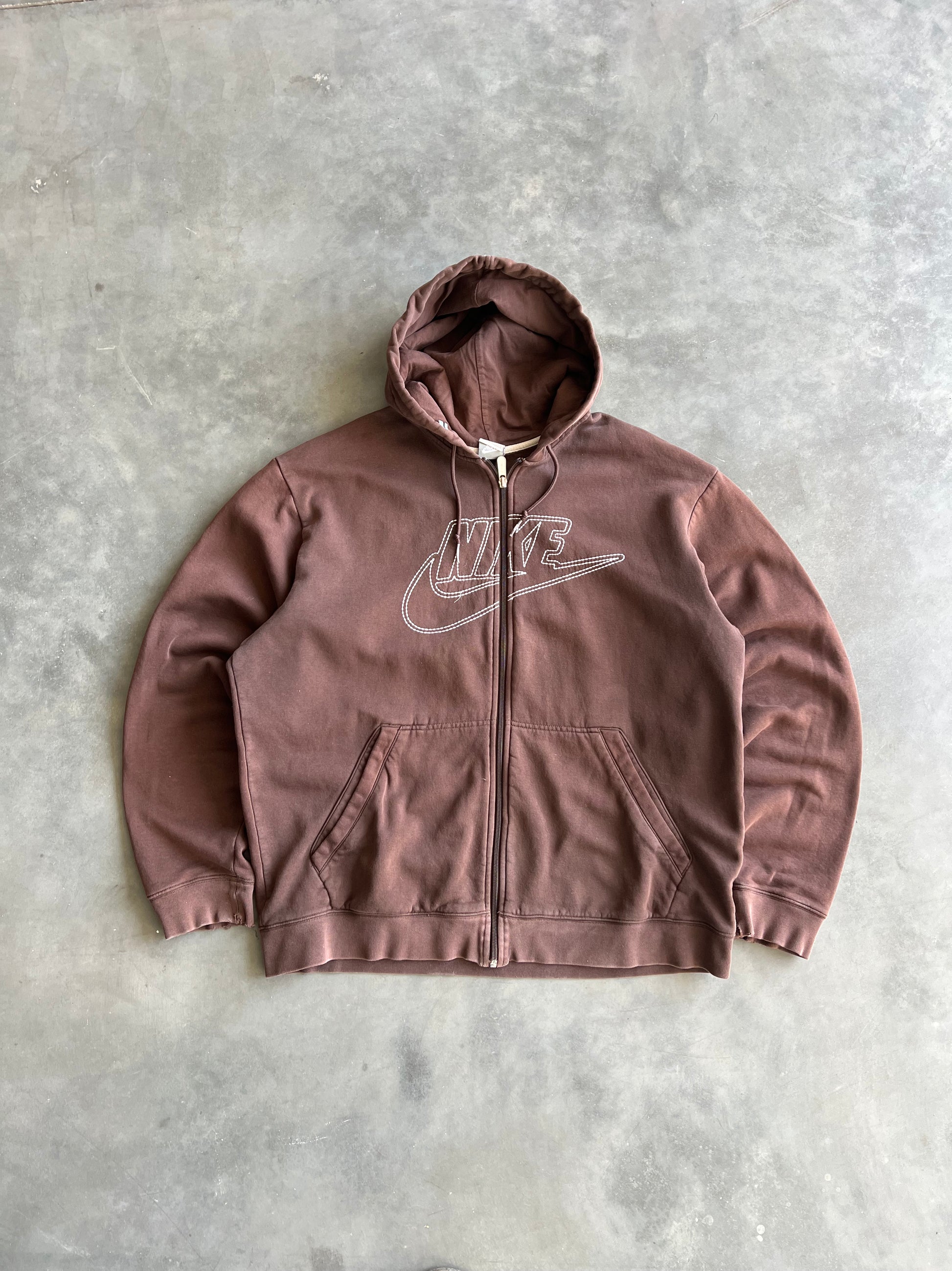 Vintage Brown Nike Zip Up Hoodie - XL