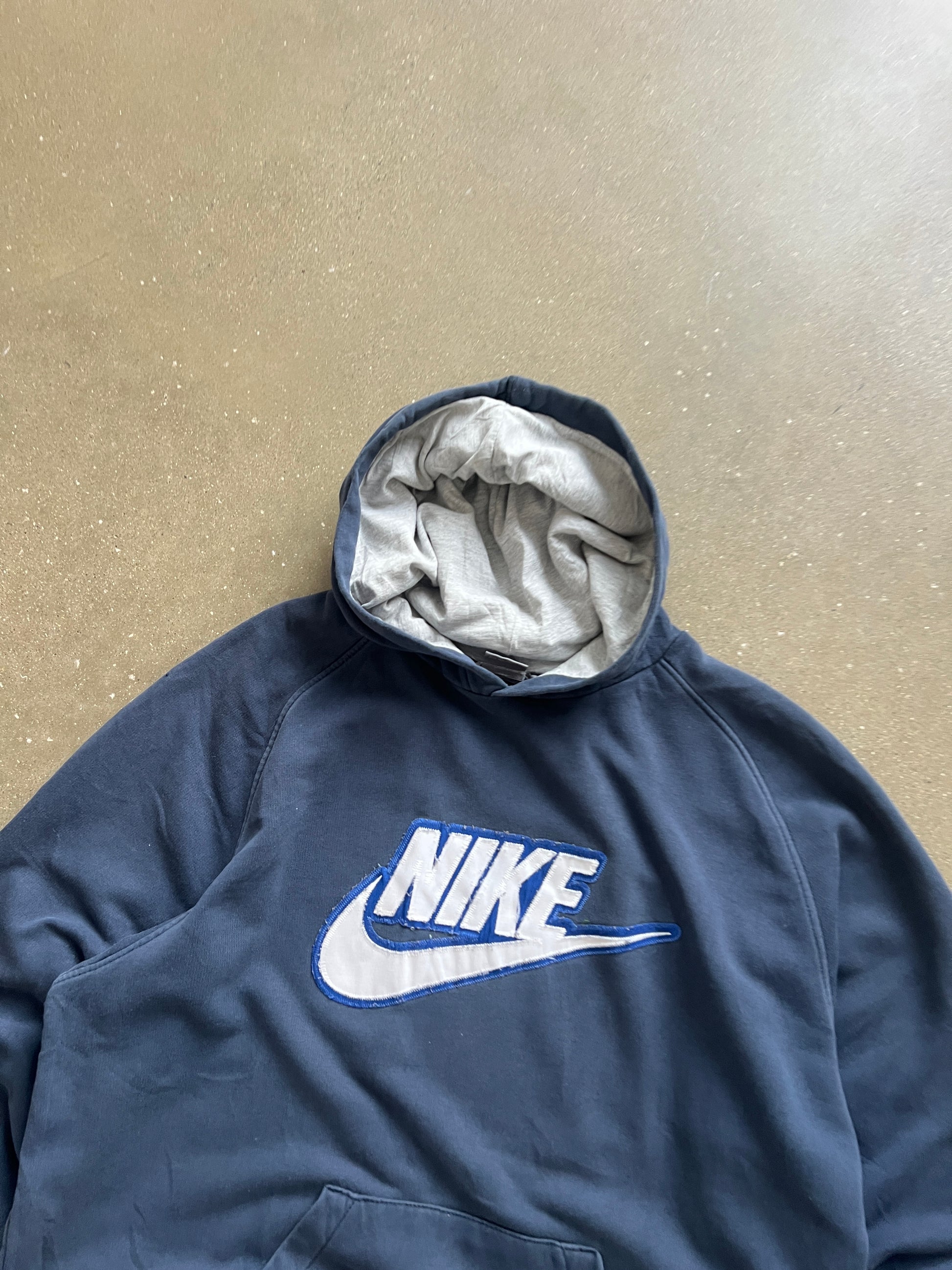 Vintage Blue Nike Spellout Hoodie - XL