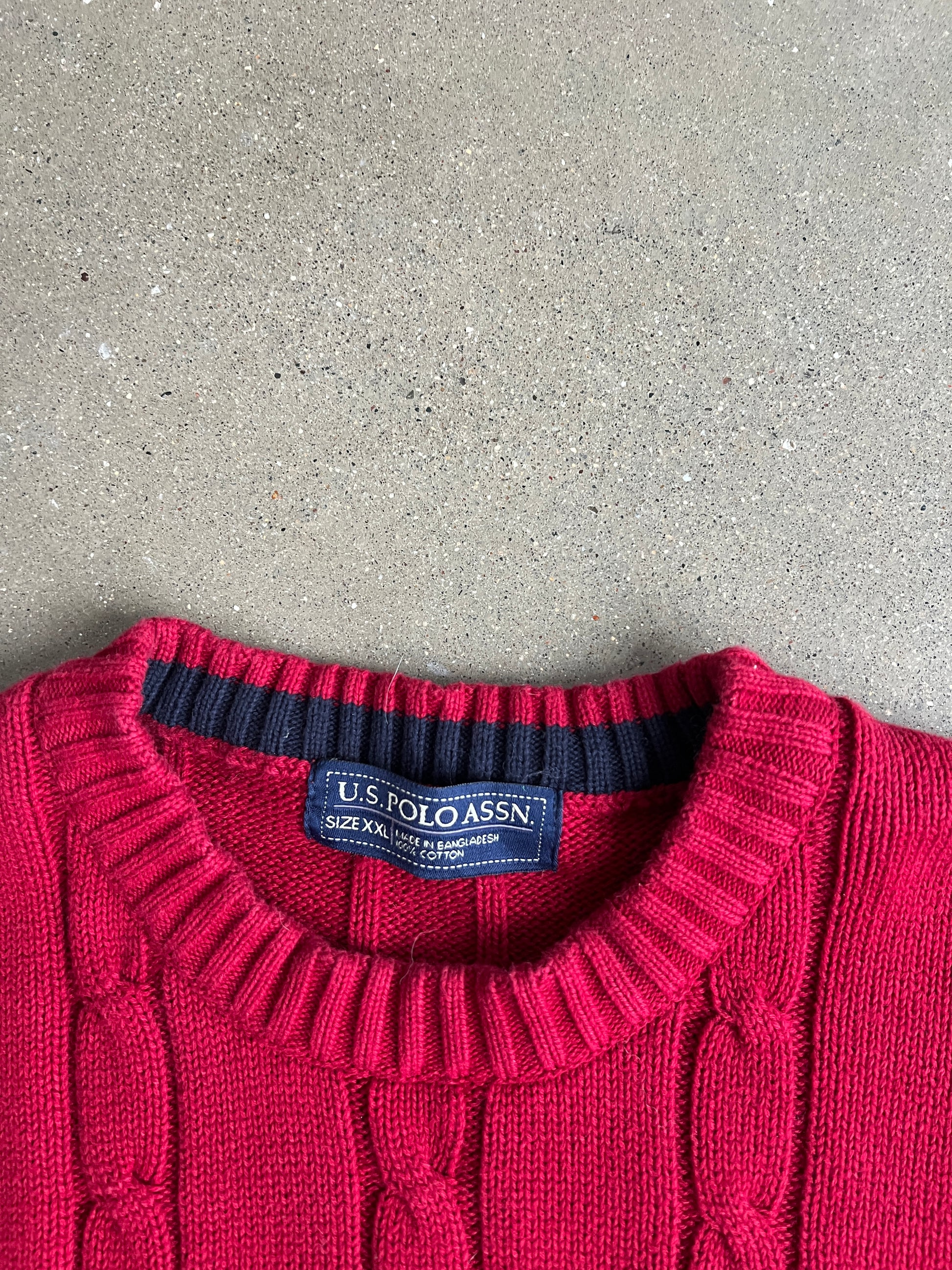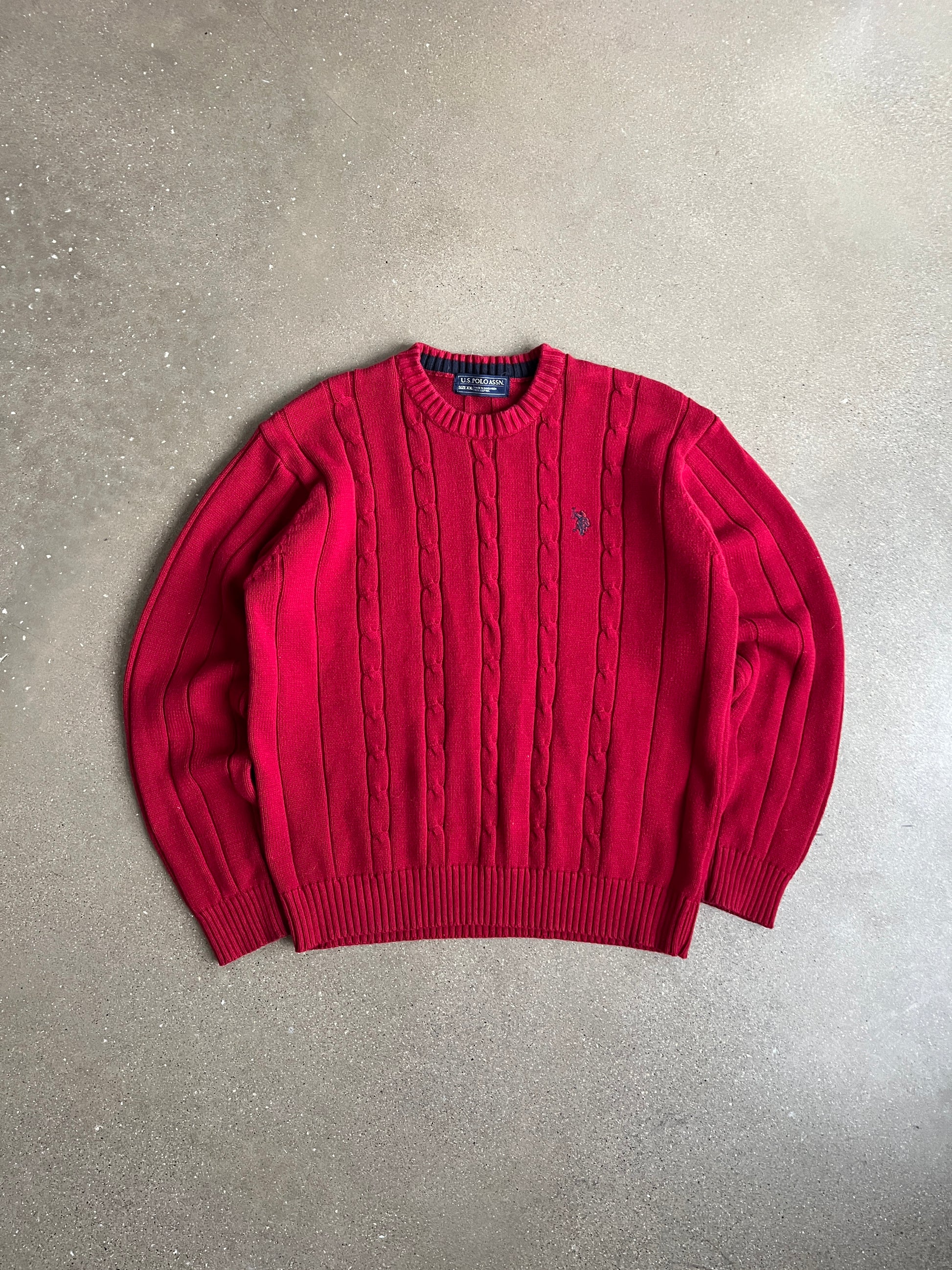 Vintage Cherry Red Polo Sweater - XL