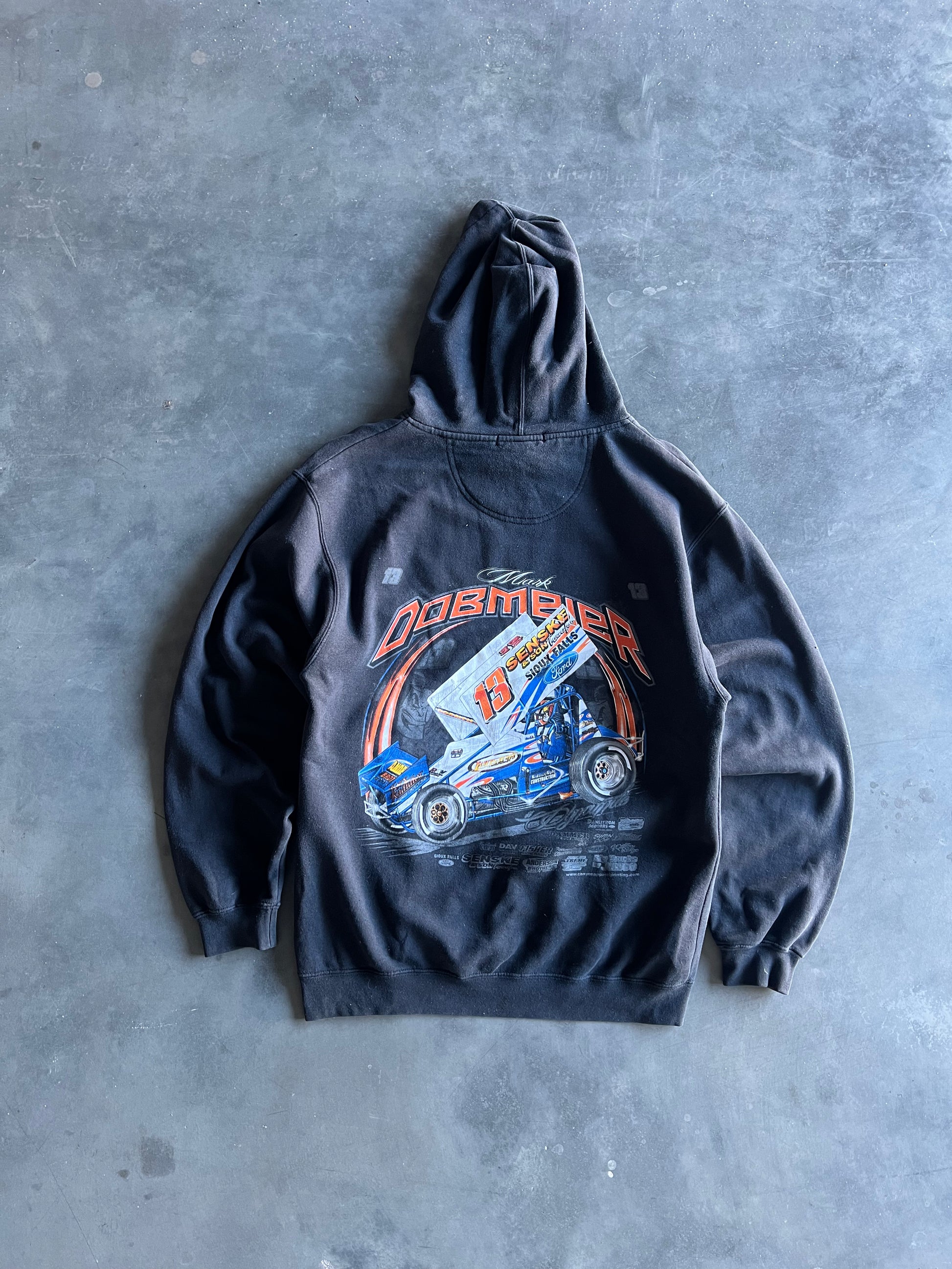 Vintage Faded Black Stock-Car Racing Hoodie - M