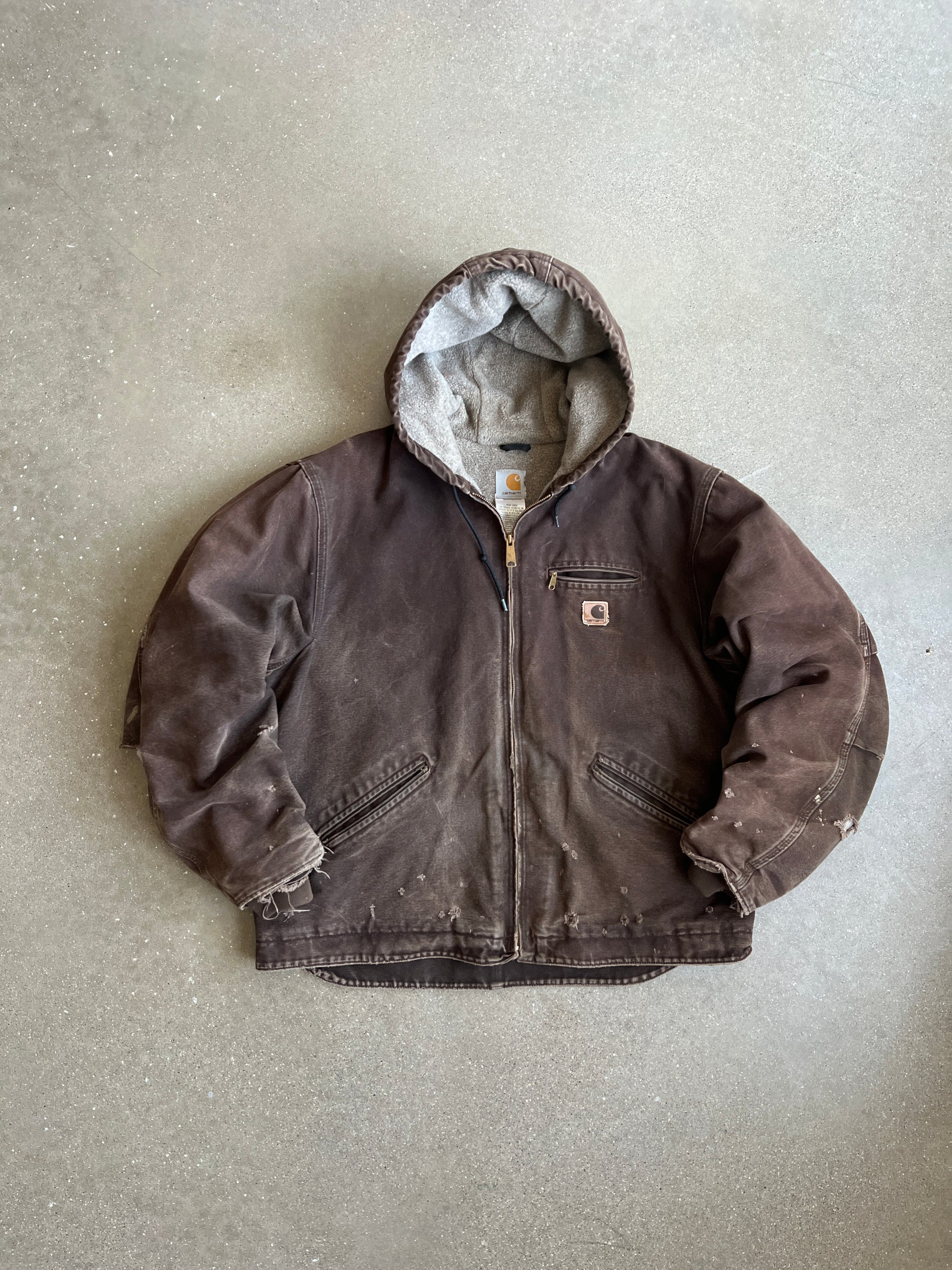 Vintage Faded Brown Sherpa Lined Carhartt Jacket - XL