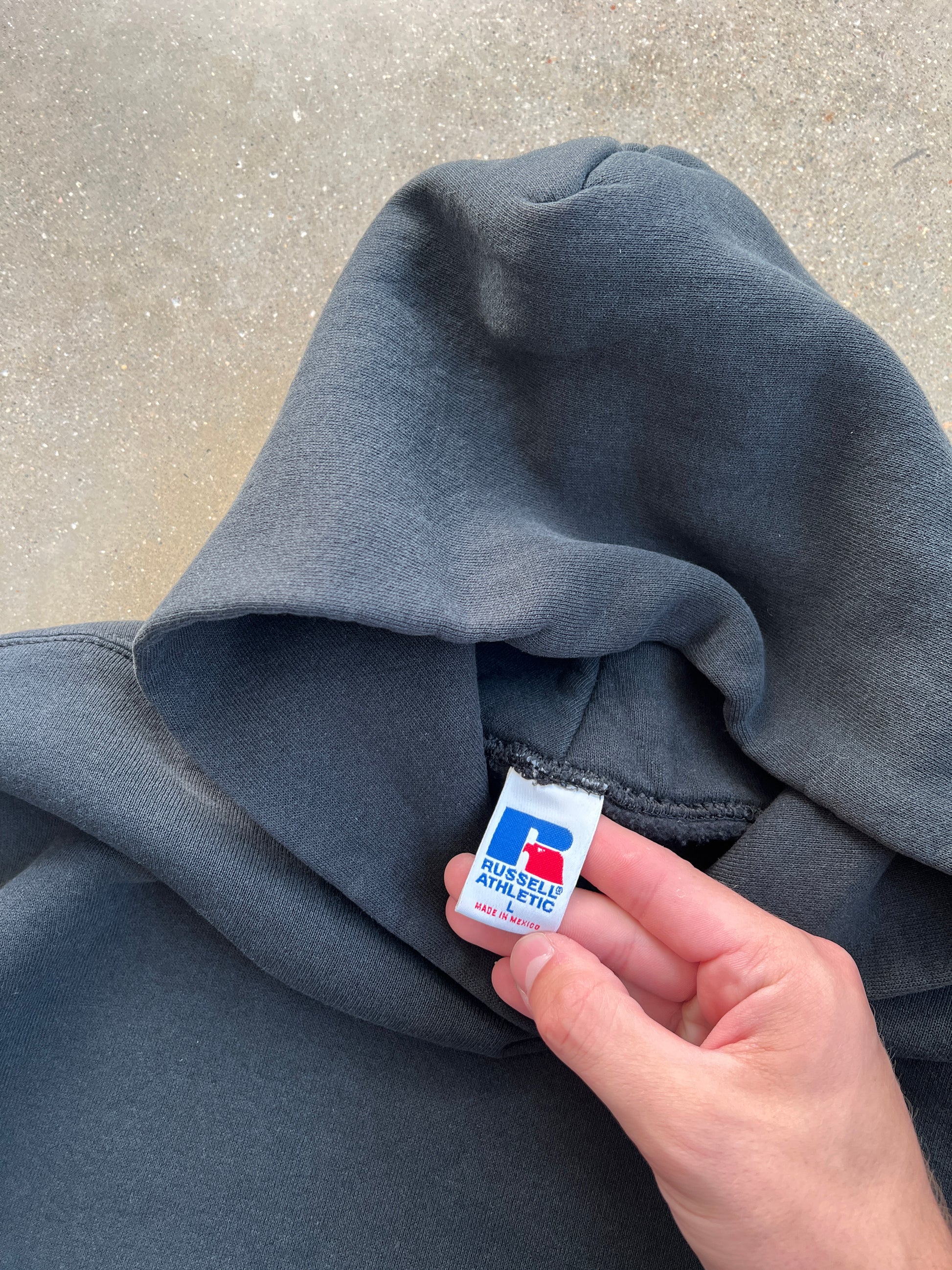 Vintage Faded Black Russell Hoodie - L