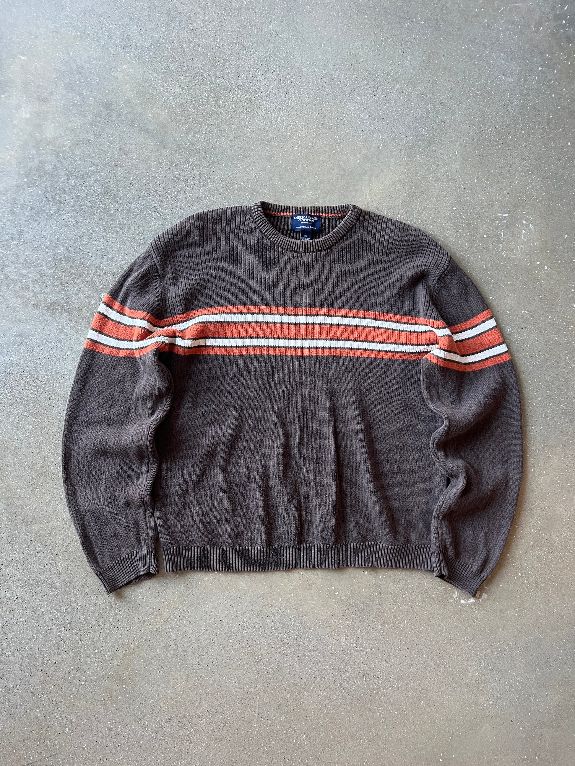 Vintage Orange & Brown Stripped Knit Sweater - XL