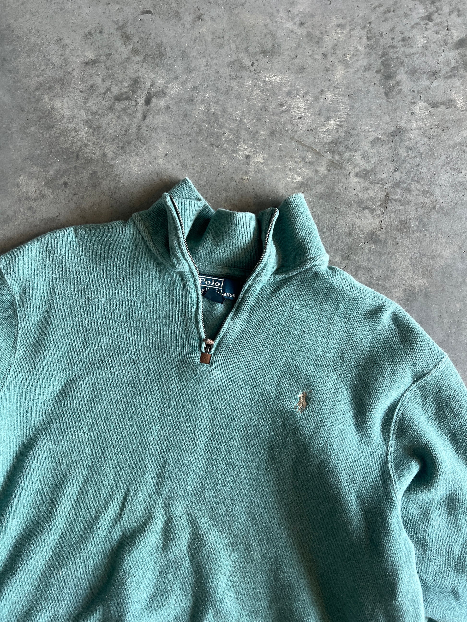 Vintage Light Green Polo Zip-Up - XL
