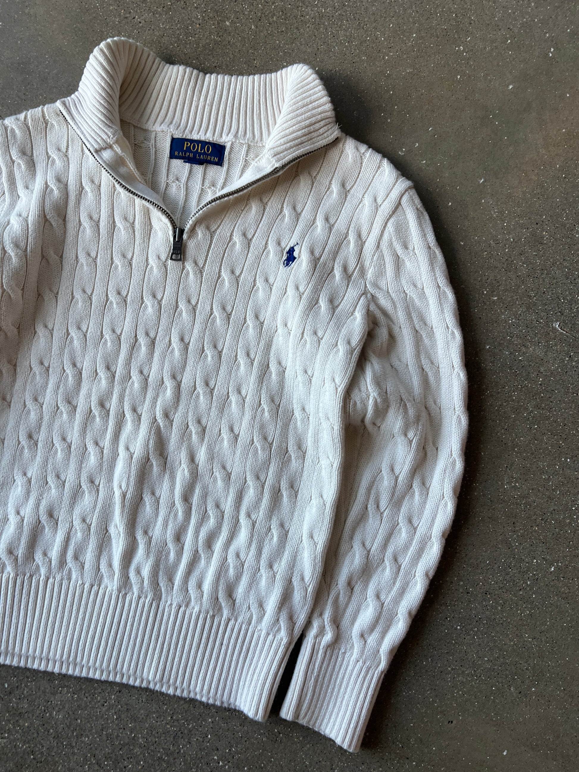 Vintage White Polo Ralph Lauren Zip Sweater - M