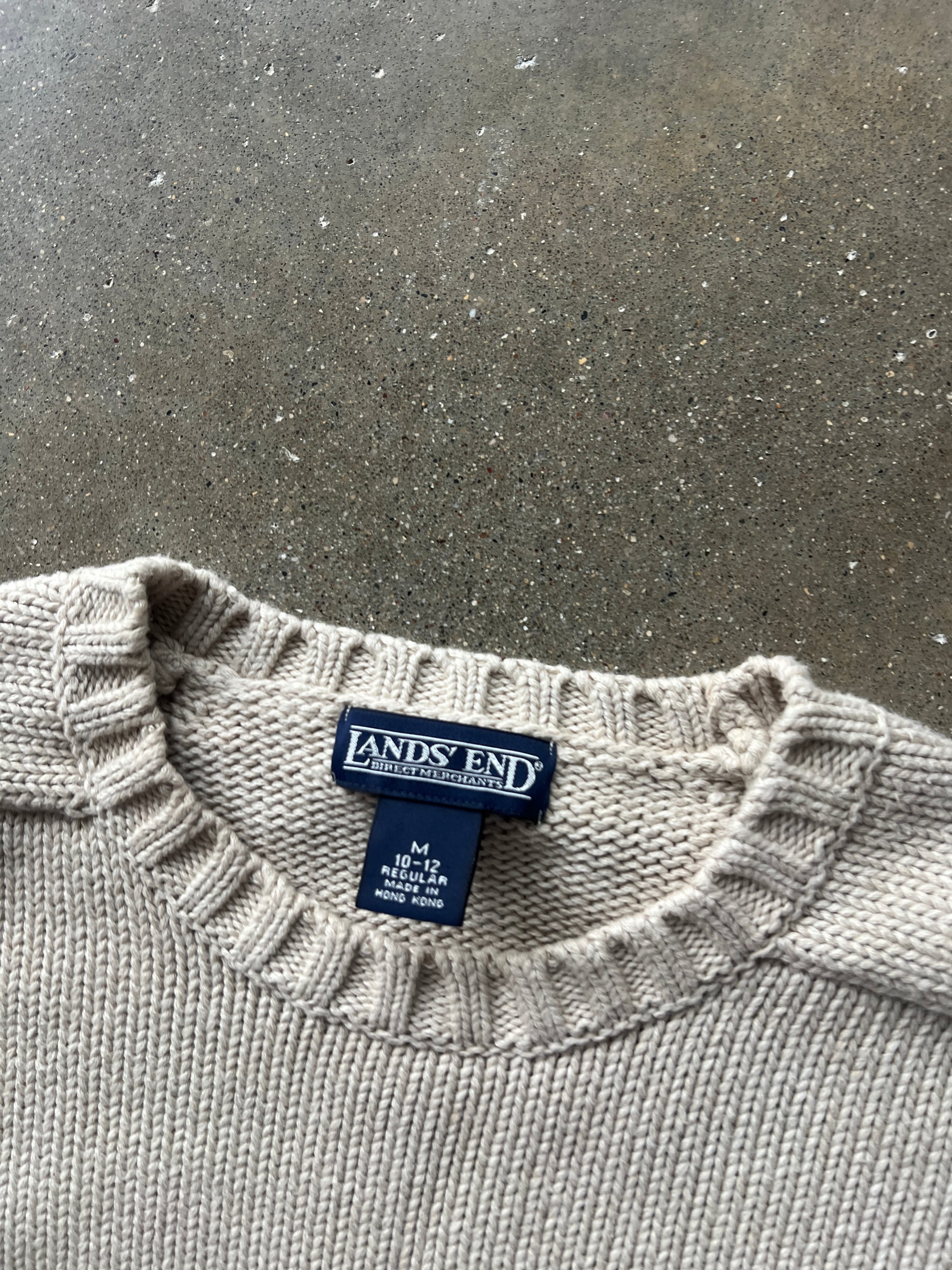 Vintage Cream Lands End Polo Style Sweater - M
