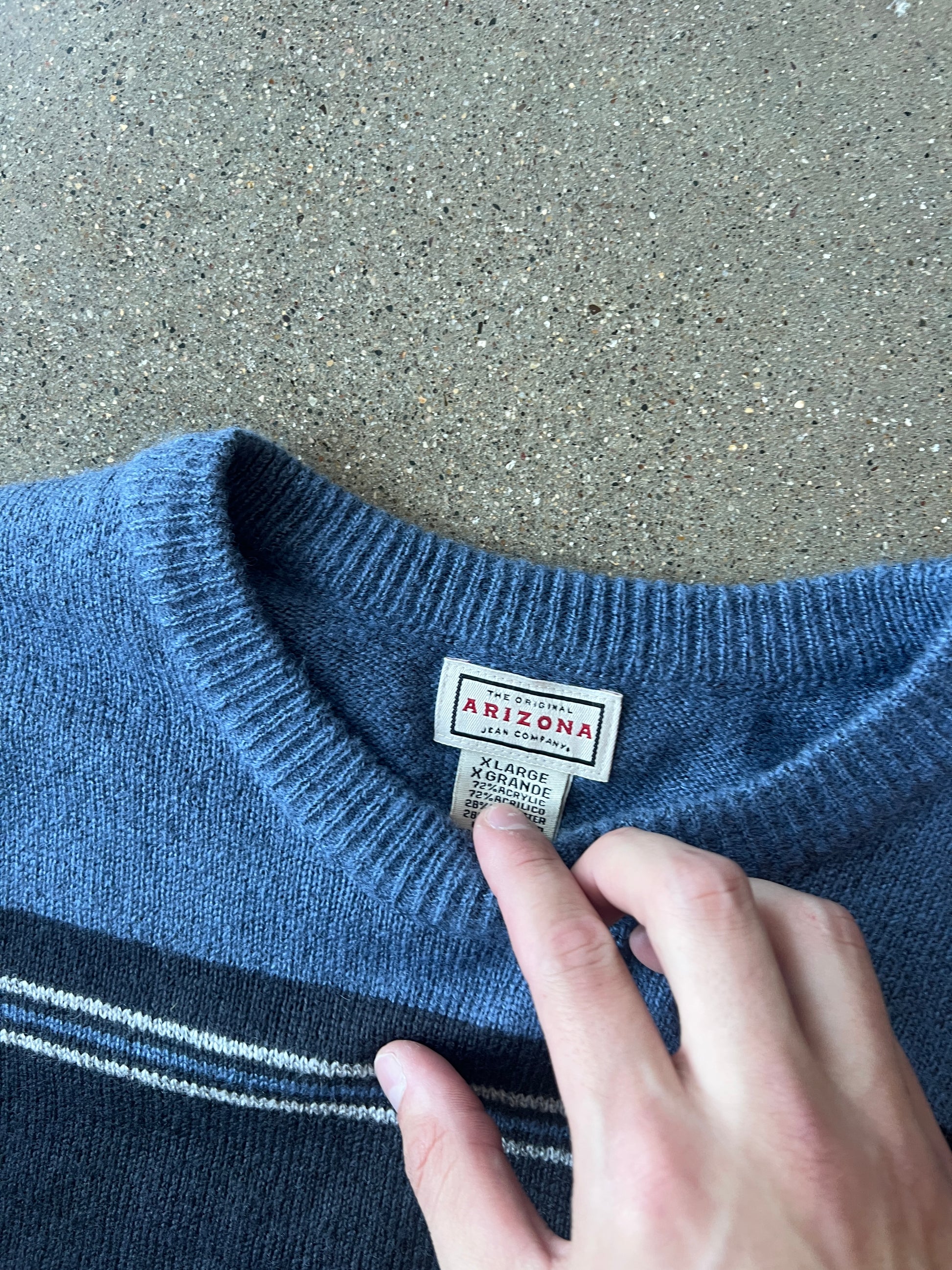 Vintage Sky Blue Stripped Knit Sweater - XL