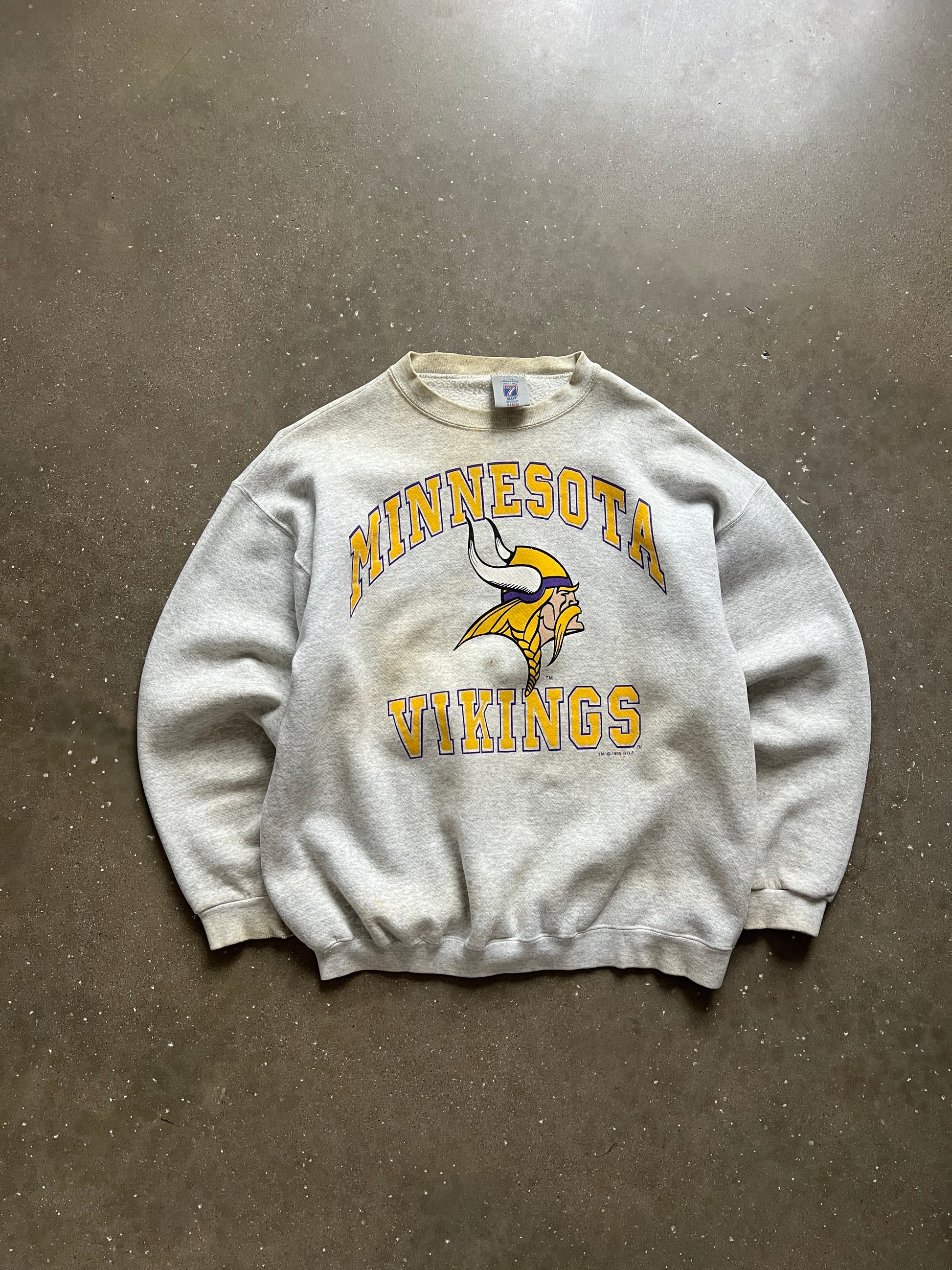 Vintage White Minnesota Vikings Crew - L
