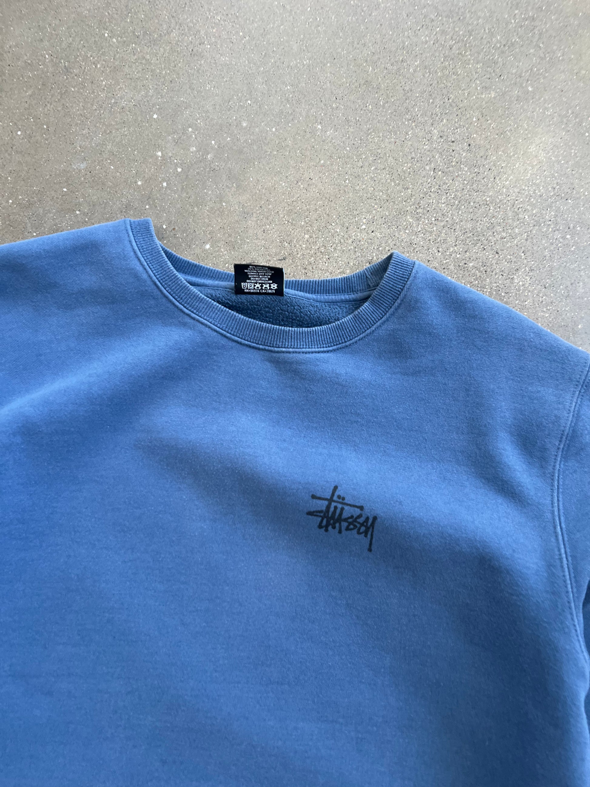 Vintage Blue Stussy Spellout Crew - XL